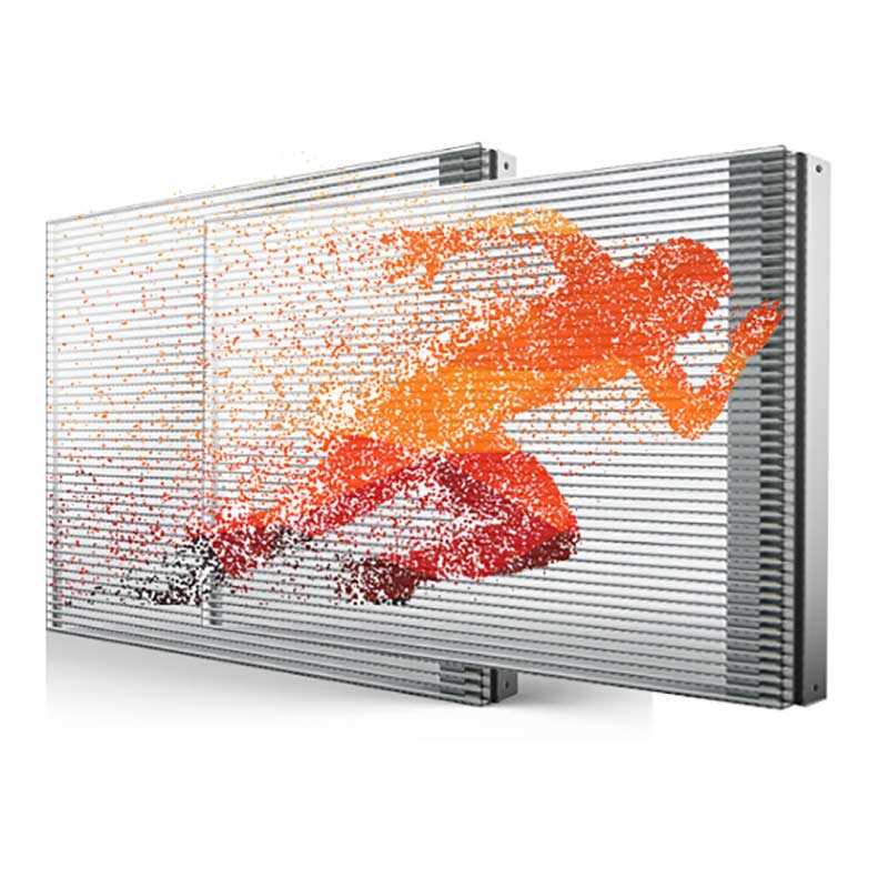 林森光電節能正發光透明LED顯示屏-P5.2系列對玻璃幕墻的改變要求非常小,同時其自身耗電功率不大,無需空調散熱和制冷,不僅具有良好的配光,更具備優質的混光效果,霧化層及抗UV燈殼材料可有效防止紫外線直接傷害LED芯片,不占用空間,直接固定在玻璃幕墻上。